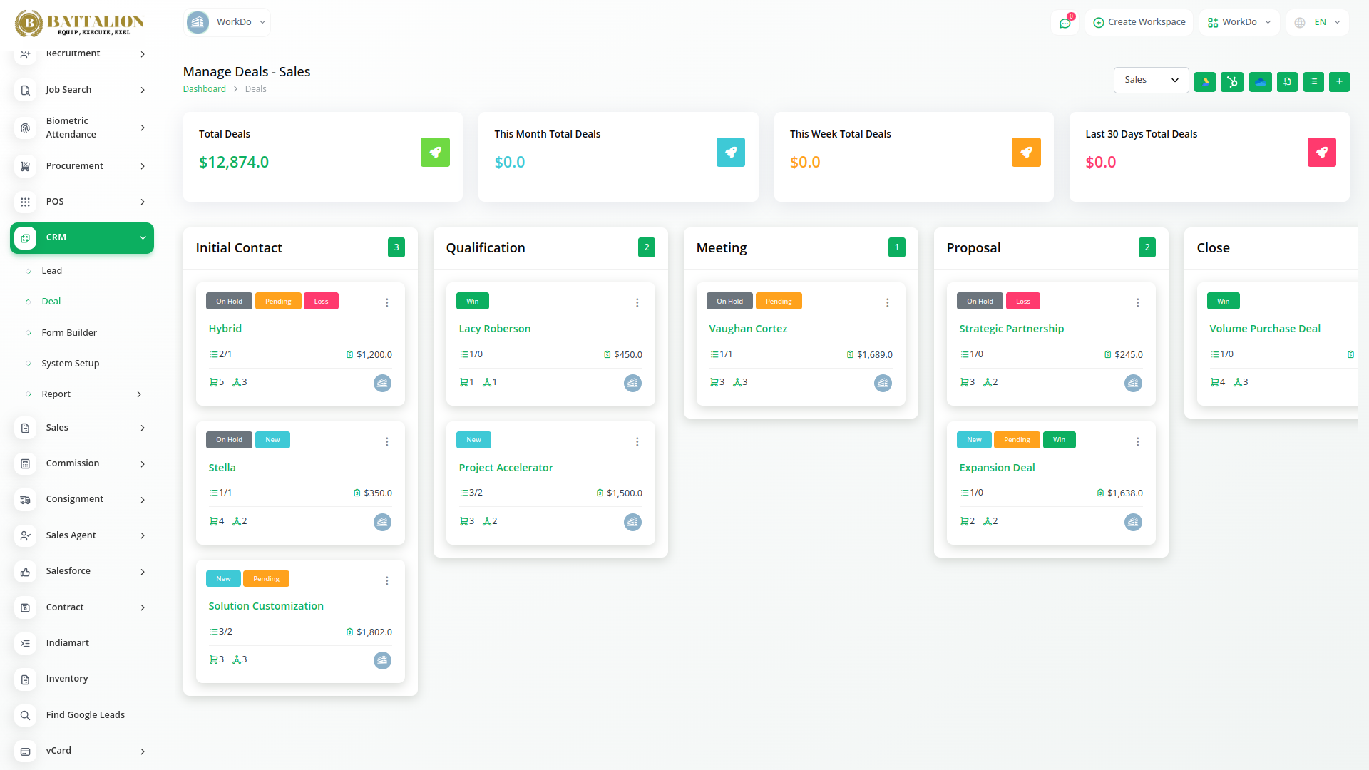 Gain full visibility and control over your sales process with a centralized, interactive dashboard. Analyze leads, deals, users, invoices, and products in real time. Build data-driven strategies, set deal limits, manage payment options, and streamline operations-all from one powerful platform.