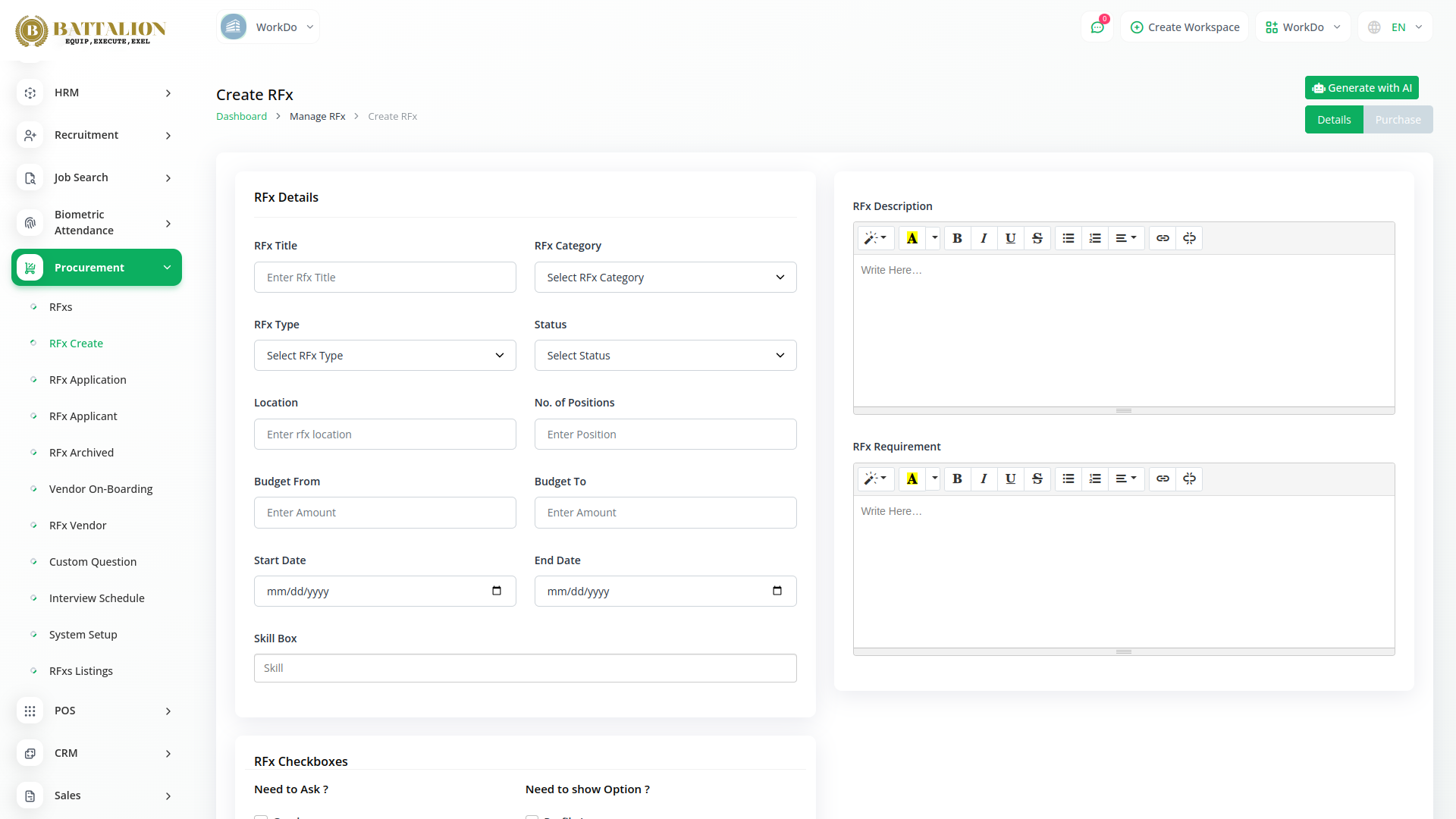Ensure compliance with organizational policies and regulatory requirements using Battalion`s robust procurement module. Maintain comprehensive records of all procurement activities, including approvals, transactions, and communications. This centralized record-keeping not only simplifies audit processes but also enhances transparency and accountability across your procurement operations..