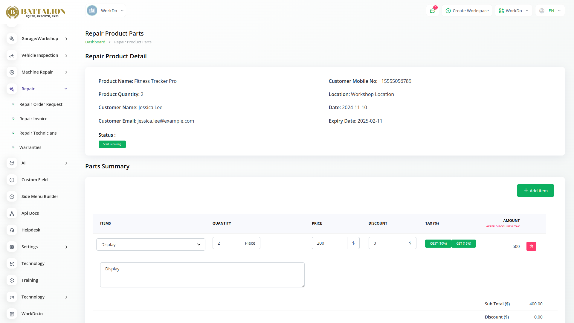 Introducing Battalion’s Repair Management Integration- a cutting-edge solution designed to streamline your repair order workflows and simplify invoicing.