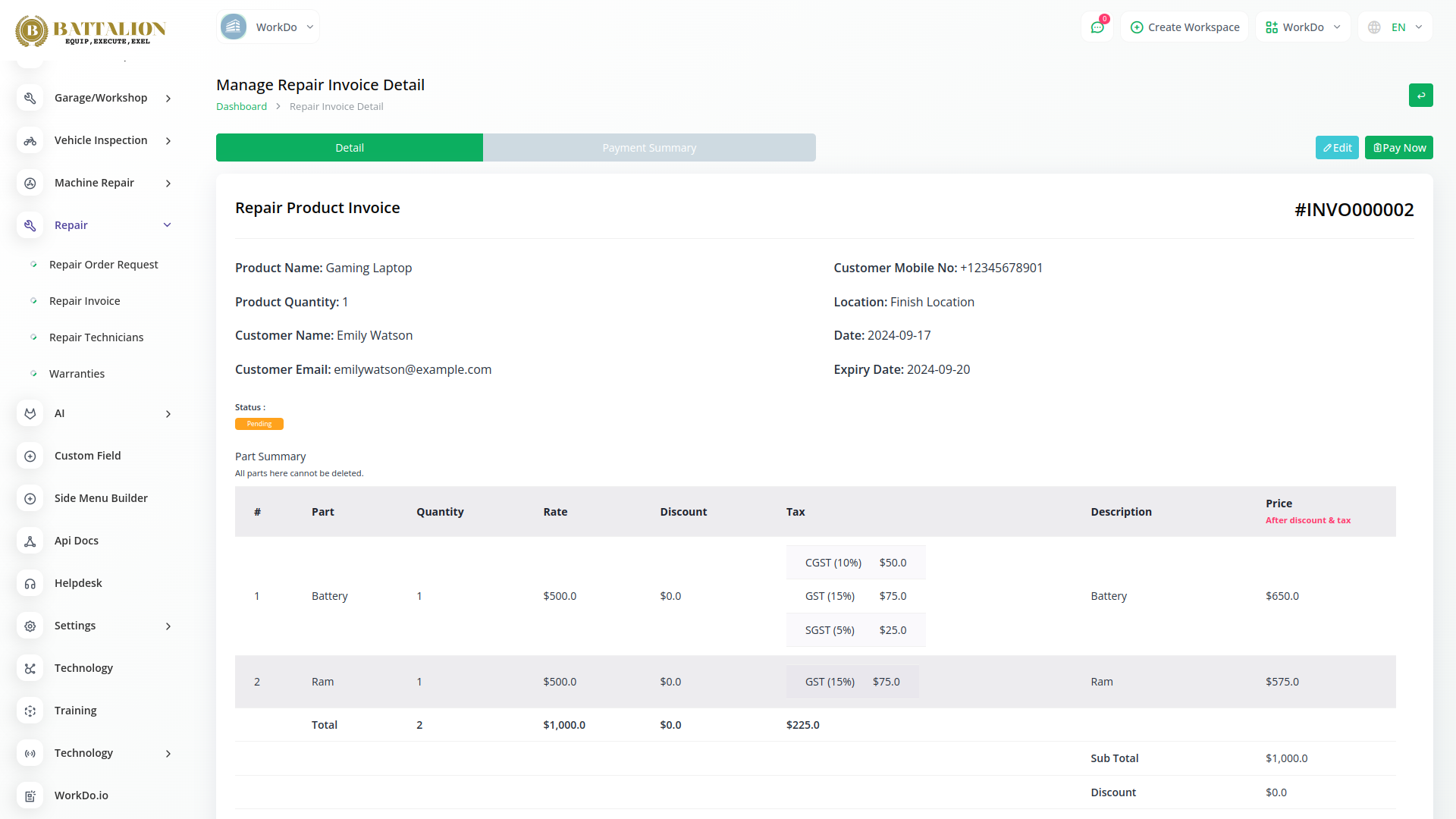 But that’s not all-Battalion’s Repair Management Module also streamlines your invoicing process. Generate and manage accurate invoices directly within the platform, eliminating the hassle of manual billing and juggling multiple systems.