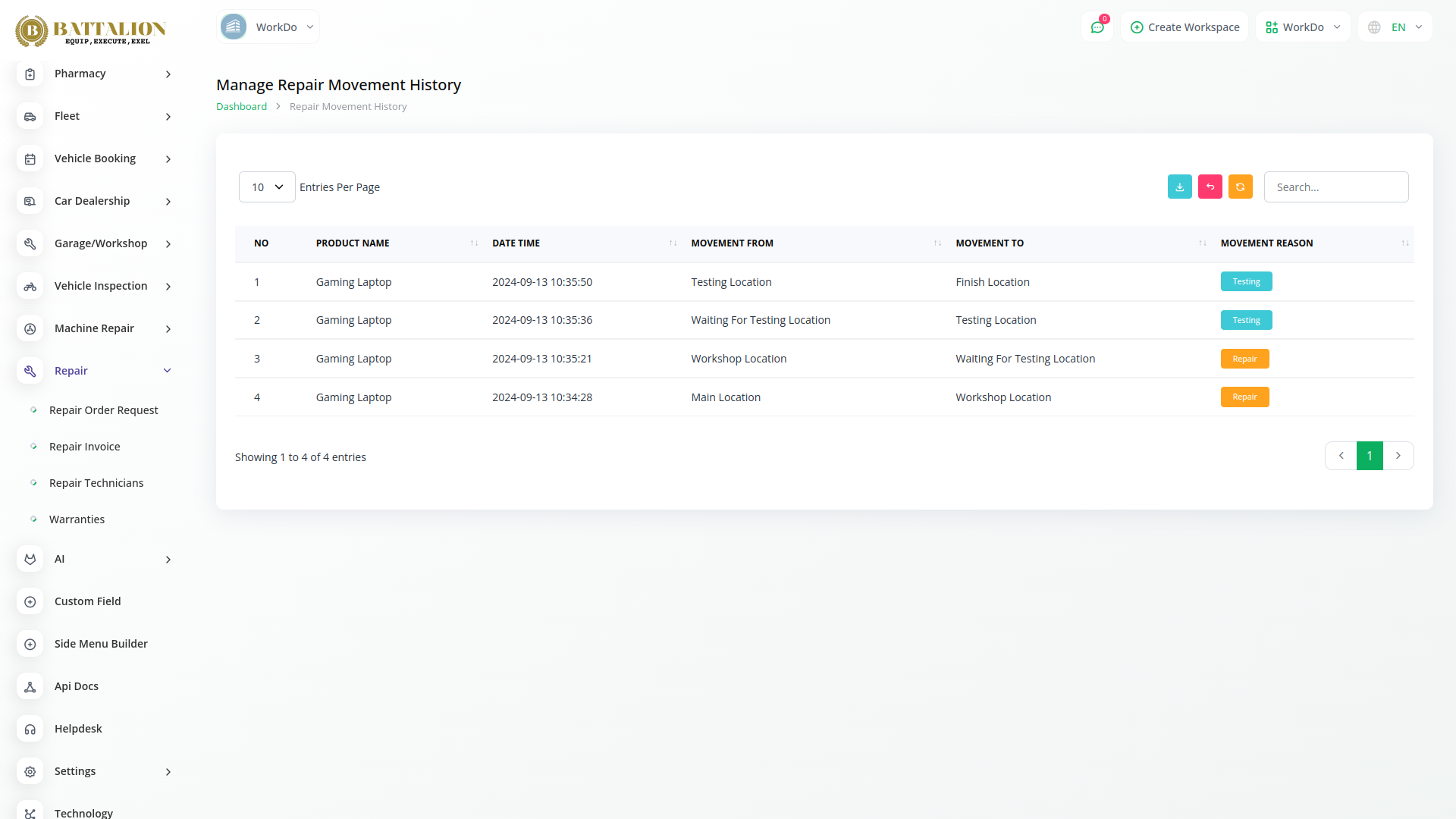 Beyond managing repair orders, Battalion’s Repair Management Module offers robust scheduling and progress-tracking features.