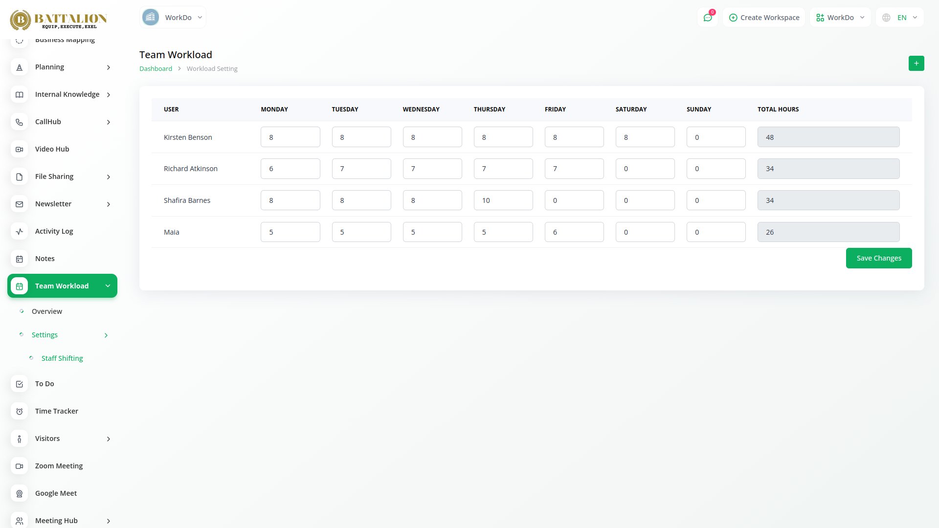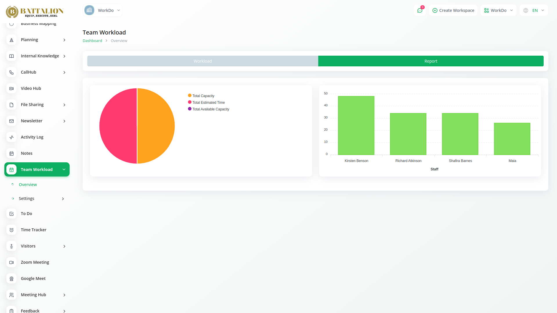 Battalion’s Team Workload Module helps you distribute tasks effectively across your team while monitoring each member’s utilization in real time.